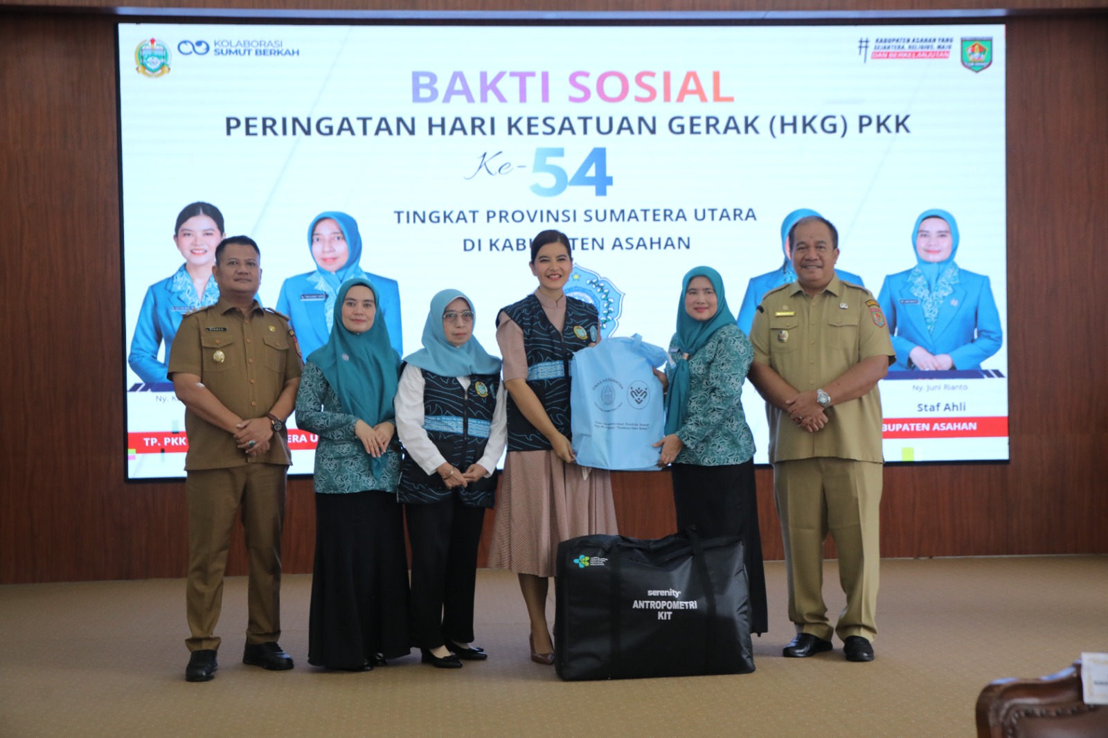 Dalam kesempatan itu juga dilakukan penyerahan sarana dan prasarana Posyandu serta rompi kader Posyandu dari TP PKK Sumut kepada TP PKK Kabupaten Asahan.