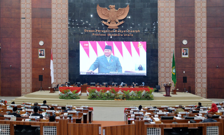 Sumut – Gubernur Sumatera Utara (Sumut) Bobby Nasution bersama Wakil Gubernur Surya menghadiri Rapat Paripurna DPRD Sumut yang beragenda mendengarkan Pidato Kenegaraan Presiden RI terkait penyampaian pengantar RUU tentang APBN Tahun Anggaran 2026. Kegiatan tersebut berlangsung secara virtual di Gedung Paripurna DPRD Sumut, Jalan Imam Bonjol Medan, Jumat (15/8/2025).