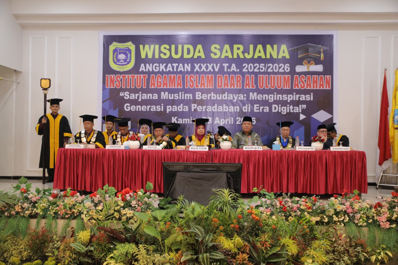 Asahan – Bupati Asahan Taufik Zainal Abidin Siregar S.Sos M.Si menghadiri Wisuda Sarjana Angkatan XXXV Institut Agama Islam Daar Al-Uluum (IAIDU) Asahan yang digelar di Aula Hotel Marina Kisaran, Kamis (23/4/2026) pukul 09.00 WIB.