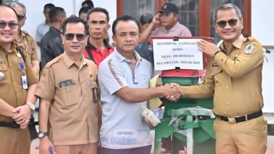 Penyerahan bantuan alat dan mesin pertanian (alsintan) oleh Pemerintah Kabupaten Nias kepada 46 kelompok tani…