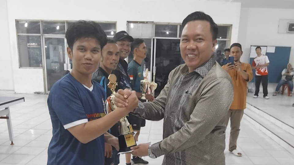 Tanjungbalai – Turnamen tenis meja piala Camat Teluk Nibung berakhir, Selasa (2/12/2025) di aula Kantor Dispora Kota Tanjungbalai, Fahrezi berhasil meraih juara 1.