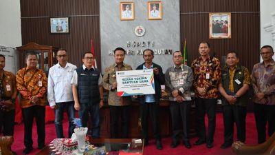 Batubara – Bupati Batubara H. Baharuddin Siagian, SH, M.Si, menyerahkan bantuan program Tanggung Jawab Sosial dan Lingkungan (TJSL) dari PT Indonesia Asahan Aluminium (Inalum) untuk pembangunan Masjid Taqwa Muhammadiyah Indrapura sebesar Rp 500.000.000, Sabtu (6/9).