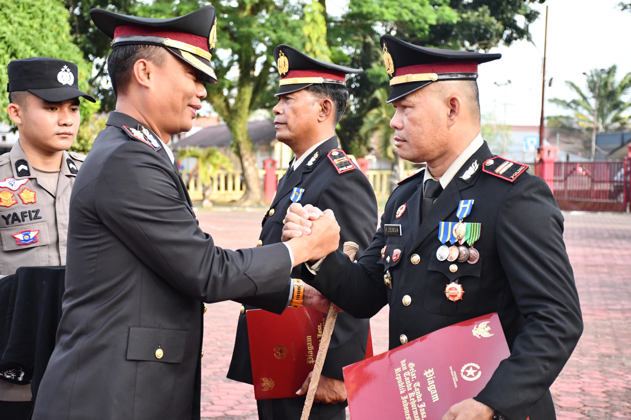 Upacara penganugerahan tersebut dihadiri Wakapolres Nias, para Pejabat Utama (PJU) Polres Nias, para Kapolsek jajaran, serta seluruh personel Polres Nias. Kegiatan berjalan tertib dan penuh makna sebagai bentuk penghargaan institusi terhadap pengabdian personel.