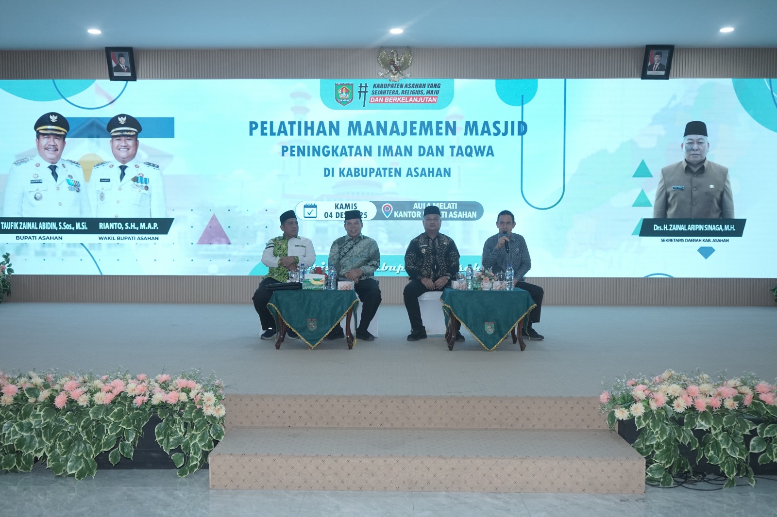 Asahan – Pemerintah Kabupaten Asahan menggelar Pelatihan Manajemen Masjid dan Peningkatan Iman dan Taqwa di Aula Melati Kantor Bupati Asahan, Kamis (4/12/2025). Kegiatan ini bertujuan untuk memperkuat kapasitas pengelolaan masjid di seluruh wilayah kabupaten, dengan menghadirkan 300 Ketua Badan Kenaziran Masjid (BKM) dari berbagai kecamatan. Para peserta dilatih untuk memperdalam kemampuan dalam tata kelola, administrasi, serta pengembangan fungsi sosial masjid sebagai pusat pembinaan umat.