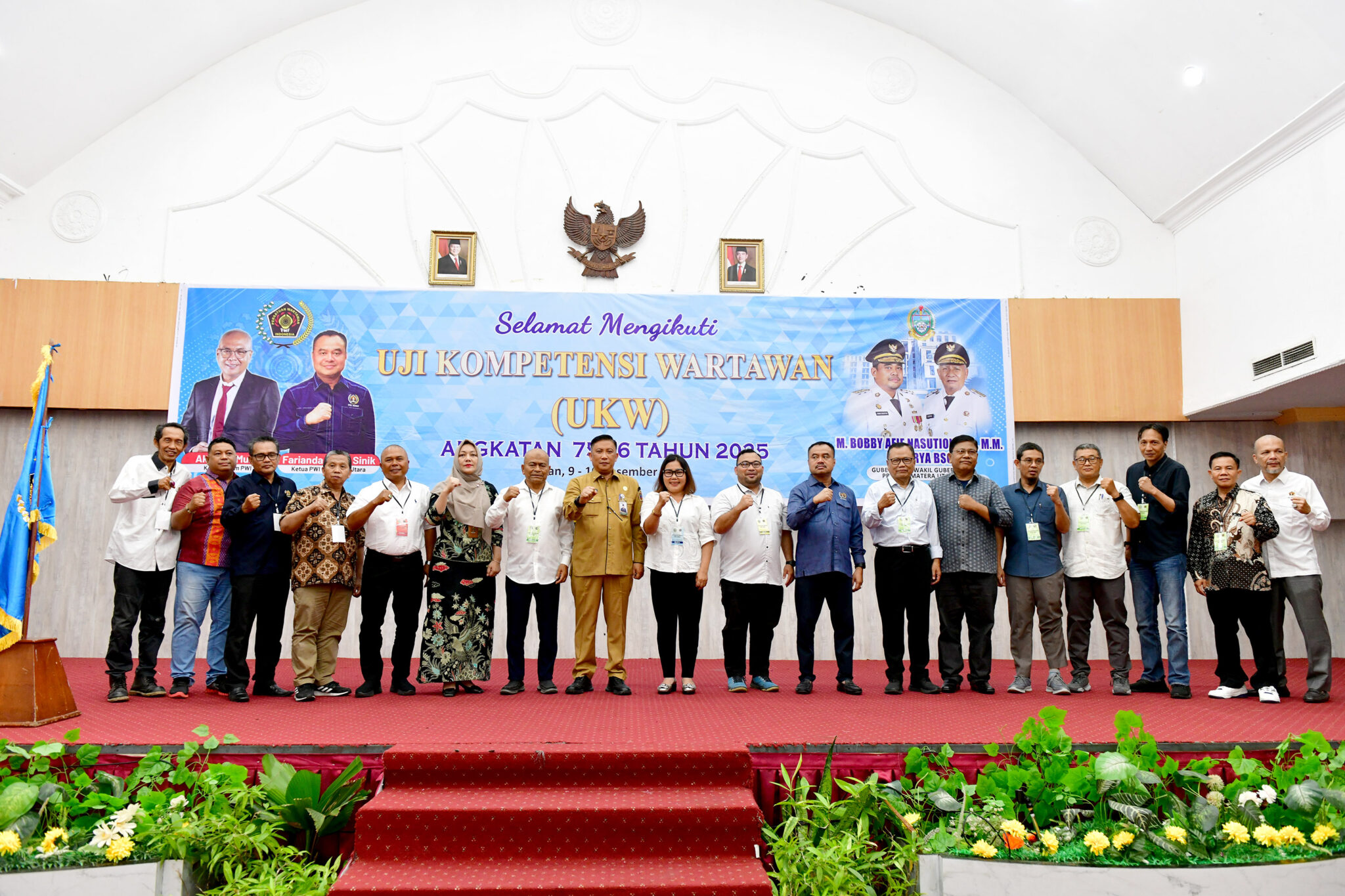 Medan – Pemerintah Provinsi (Pemprov) Sumatera Utara (Sumut) terus berkomitmen untuk mendukung perkembangan dunia pers, termasuk dalam upaya meningkatkan profesionalisme wartawan. Komitmen ini disampaikan oleh Kepala Dinas Komunikasi dan Informatika (Kominfo) Sumut, Erwin Hotmansah Harahap, saat mewakili Gubernur Sumut Bobby Nasution pada acara Uji Kompetensi Wartawan (UKW) yang diselenggarakan oleh Persatuan Wartawan Indonesia (PWI) di Hotel Madani, Medan, Selasa (9/12/2025).