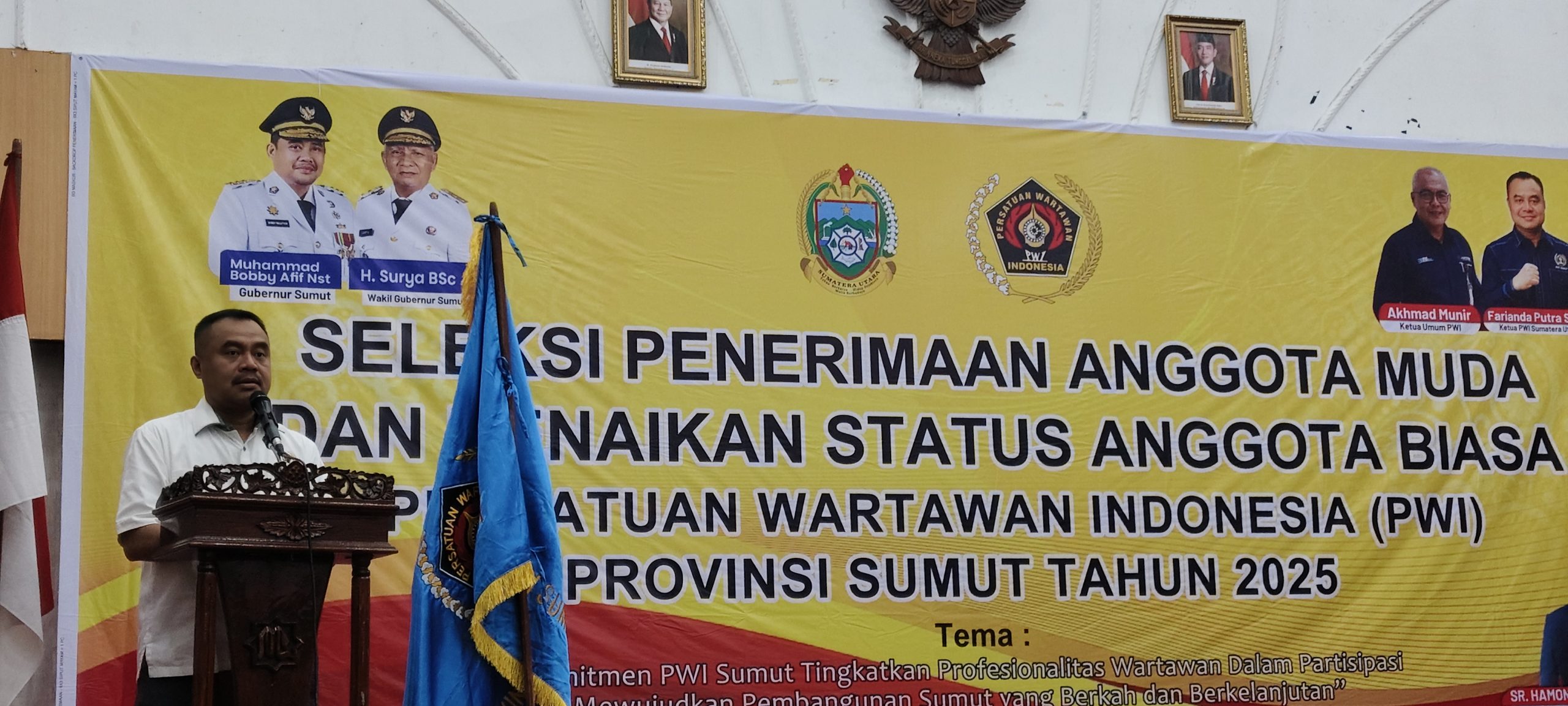 Medan – Persatuan Wartawan Indonesia Provinsi Sumatera Utara (PWI Sumut) menggelar seleksi penerimaan anggota muda dan kenaikan status anggota biasa Tahun 2025. Kegiatan ini mengusung tema “Komitmen PWI Sumut Meningkatkan Profesionalitas Wartawan dalam Mewujudkan Pembangunan Sumut yang Berkah dan Berkelanjutan”.