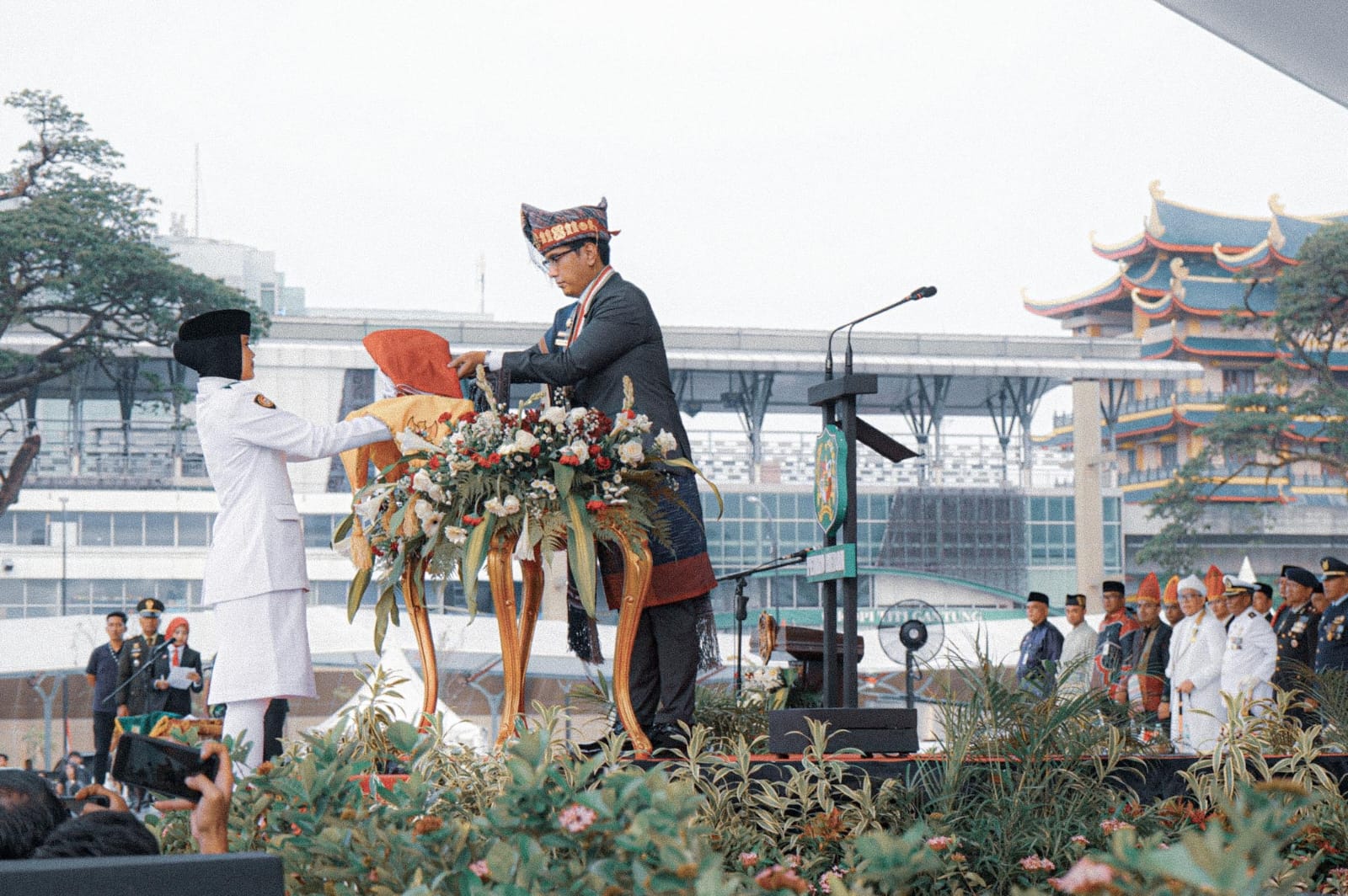 Wali Kota Medan, Rico Tri Putra Bayu Waas, bertindak sebagai inspektur upacara dengan mengenakan pakaian adat Toba. Upacara diikuti oleh jajaran Forkopimda, Wakil Wali Kota H. Zakiyuddin, tokoh masyarakat, Ketua TP PKK Airin Rico Waas, Sekda Wiriya Alrahman, pimpinan perangkat daerah, serta ribuan warga yang memadati kawasan titik nol Kota Medan.