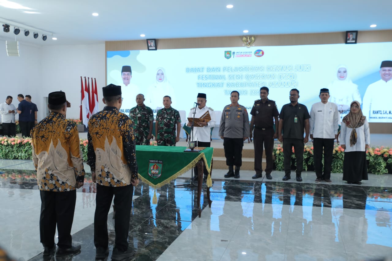 Asahan – Wakil Bupati Asahan, Rianto, SH., M.A.P, secara resmi melantik dan membaiat Dewan Juri Festival Seni Qasidah (FSQ) Tingkat Kabupaten Asahan Tahun 2025. Prosesi pelantikan berlangsung di Aula Melati, Kantor Bupati Asahan, Rabu (30/07/2025).