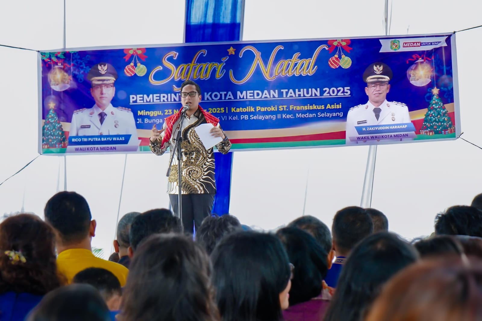 Medan – Wali Kota Medan, Rico Tri Putra Bayu Waas, mengajak masyarakat memperkuat keharmonisan keluarga sebagai pondasi utama kehidupan bermasyarakat. Ajakan tersebut disampaikannya pada kegiatan Safari Natal Pemko Medan di Gereja Katolik Paroki St. Fransiskus Assisi Padang Bulan, Jalan Bunga Ester, Kecamatan Medan Selayang, Minggu (23/11/2025).